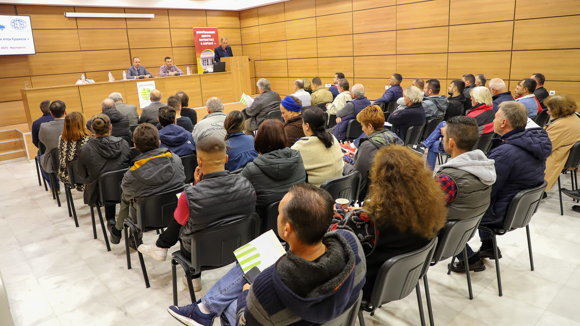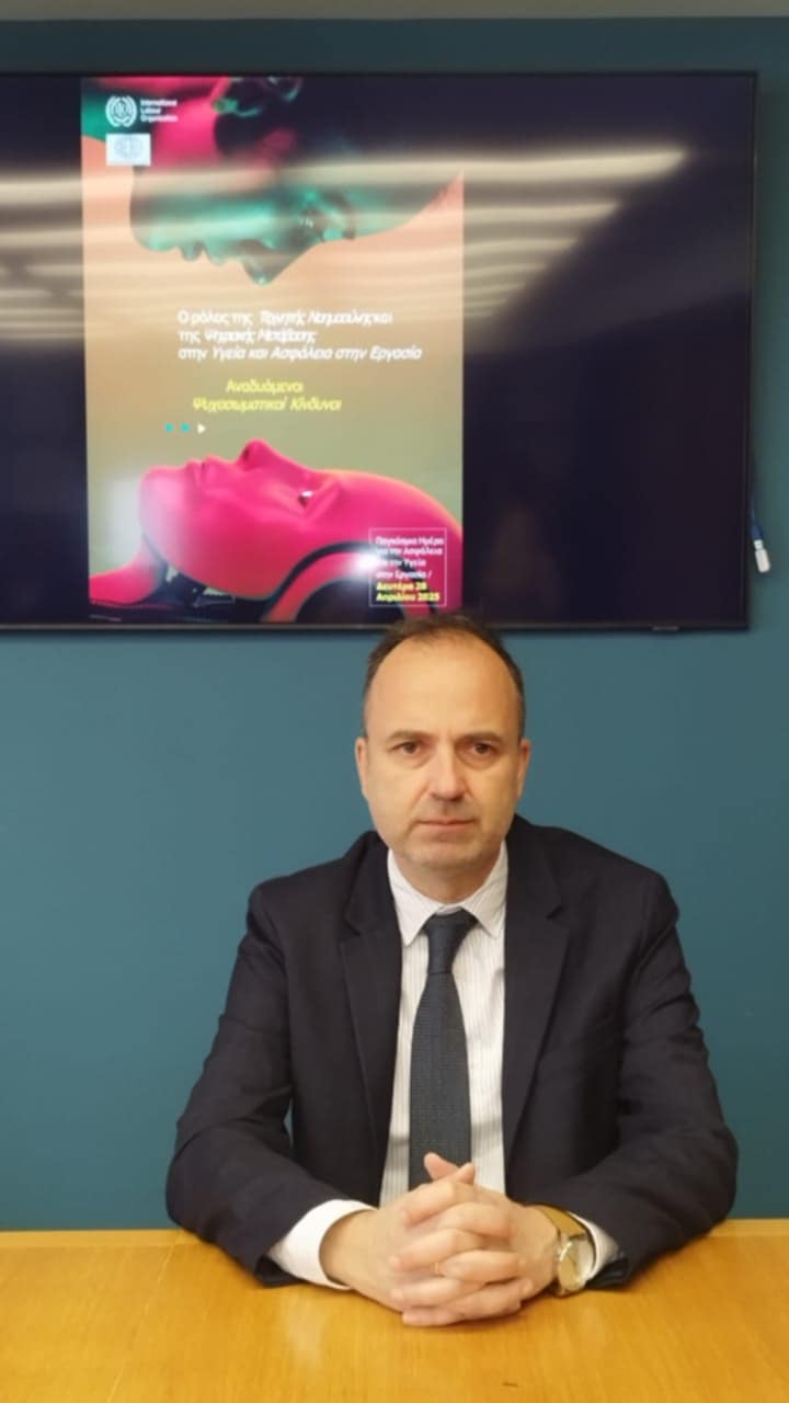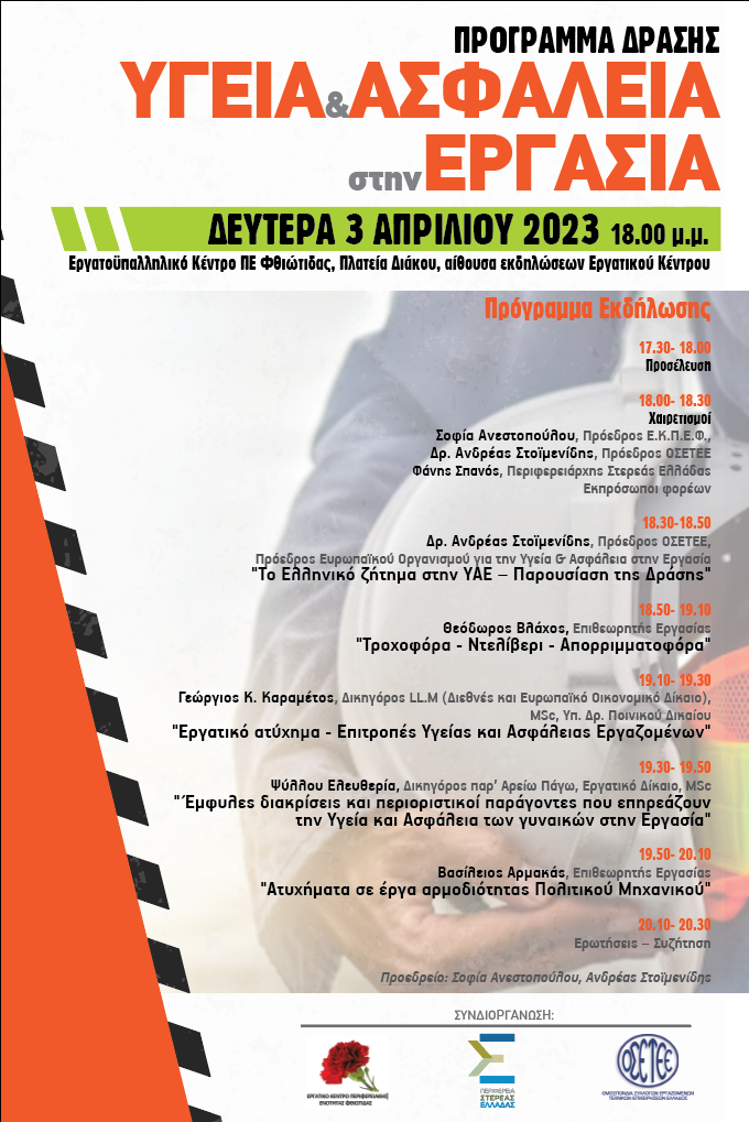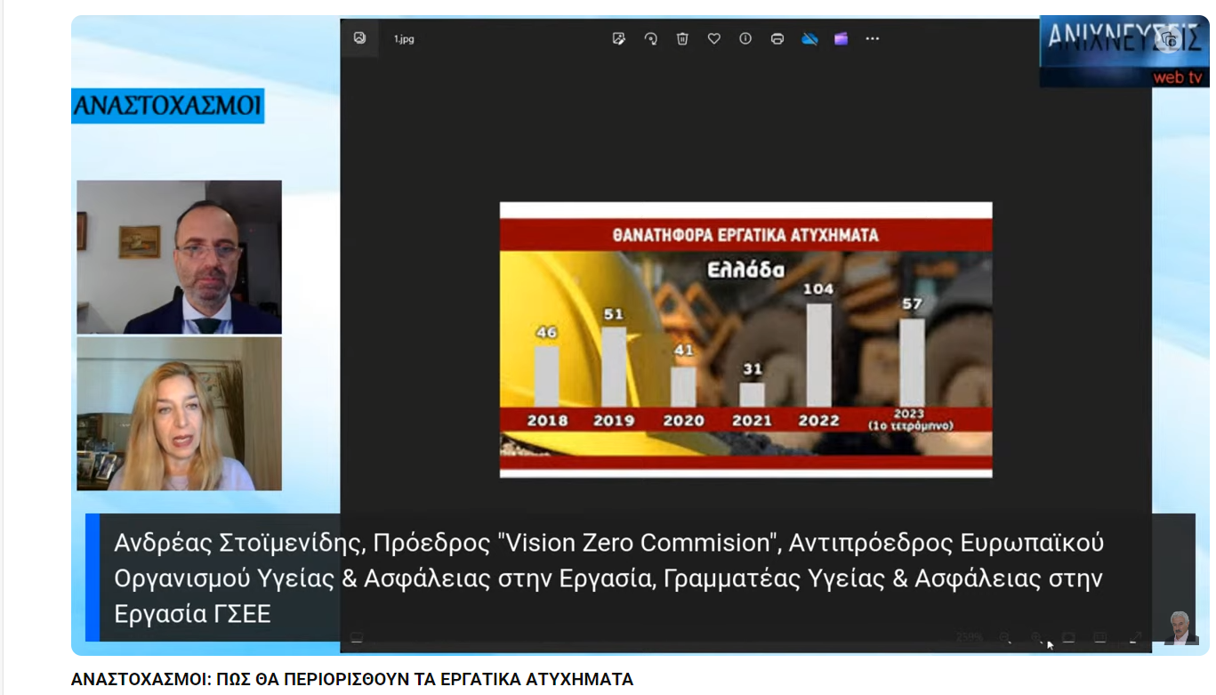 Στην ομιλία του ο Ανδρέας Στοϊμενίδης τόνισε ότι σε αντίθεση με την υπόλοιπη Ευρώπη η κατάσταση στα θέματα Υγείας και Ασφάλειας στην Εργασία (ΥΑΕ) στην Ελλάδα, επιδεινώνεται.