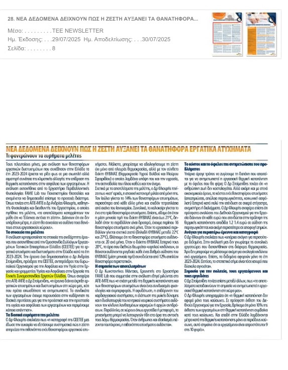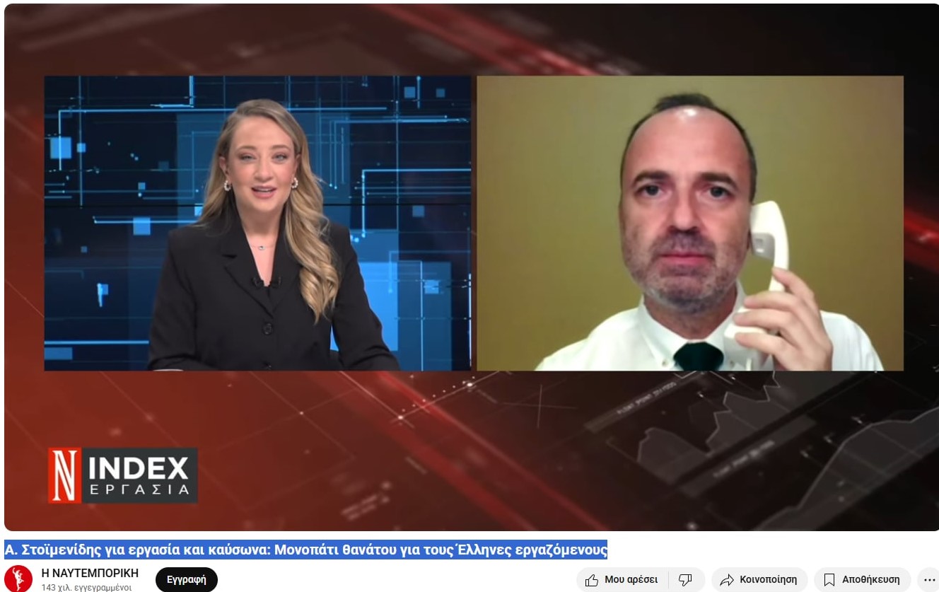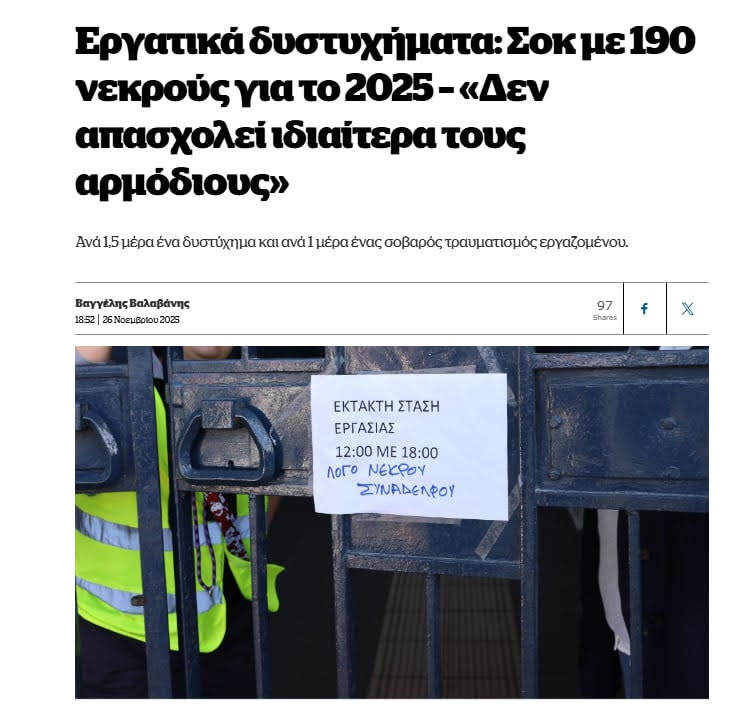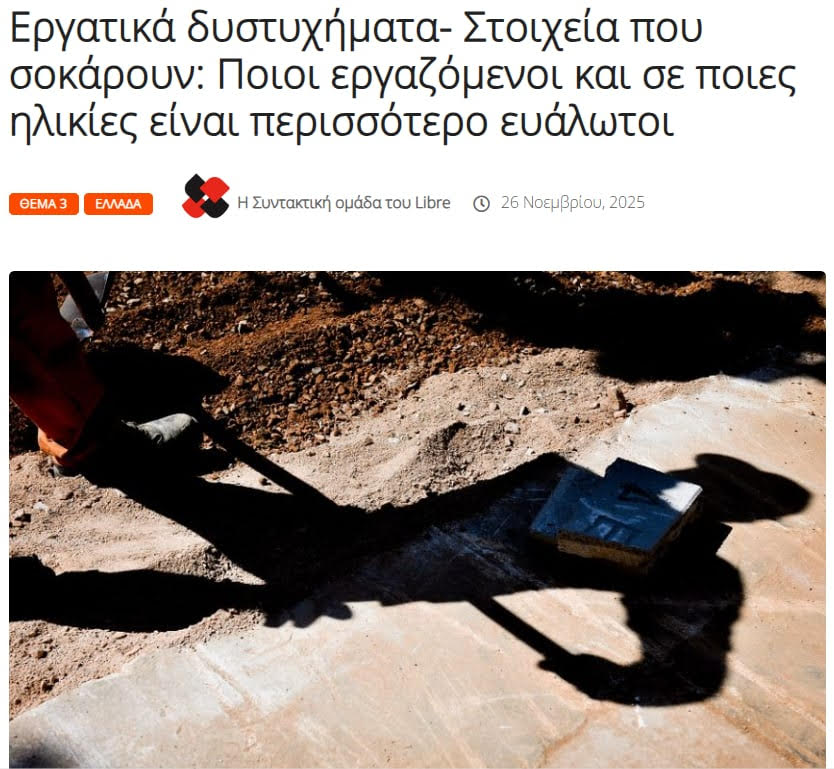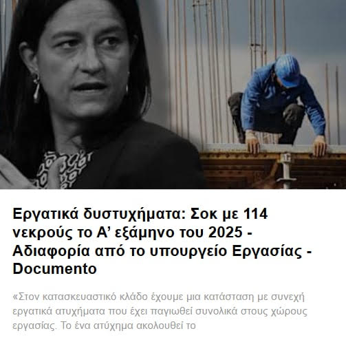 Ρεπορτάζ του Δημοσιογράφου Βαγγέλη Βαλαβάνη στον ιστότοπο Documento.gr με θέμα: Εργατικά δυστυχήματα: Σοκ με 190 νεκρούς για το 2025 –