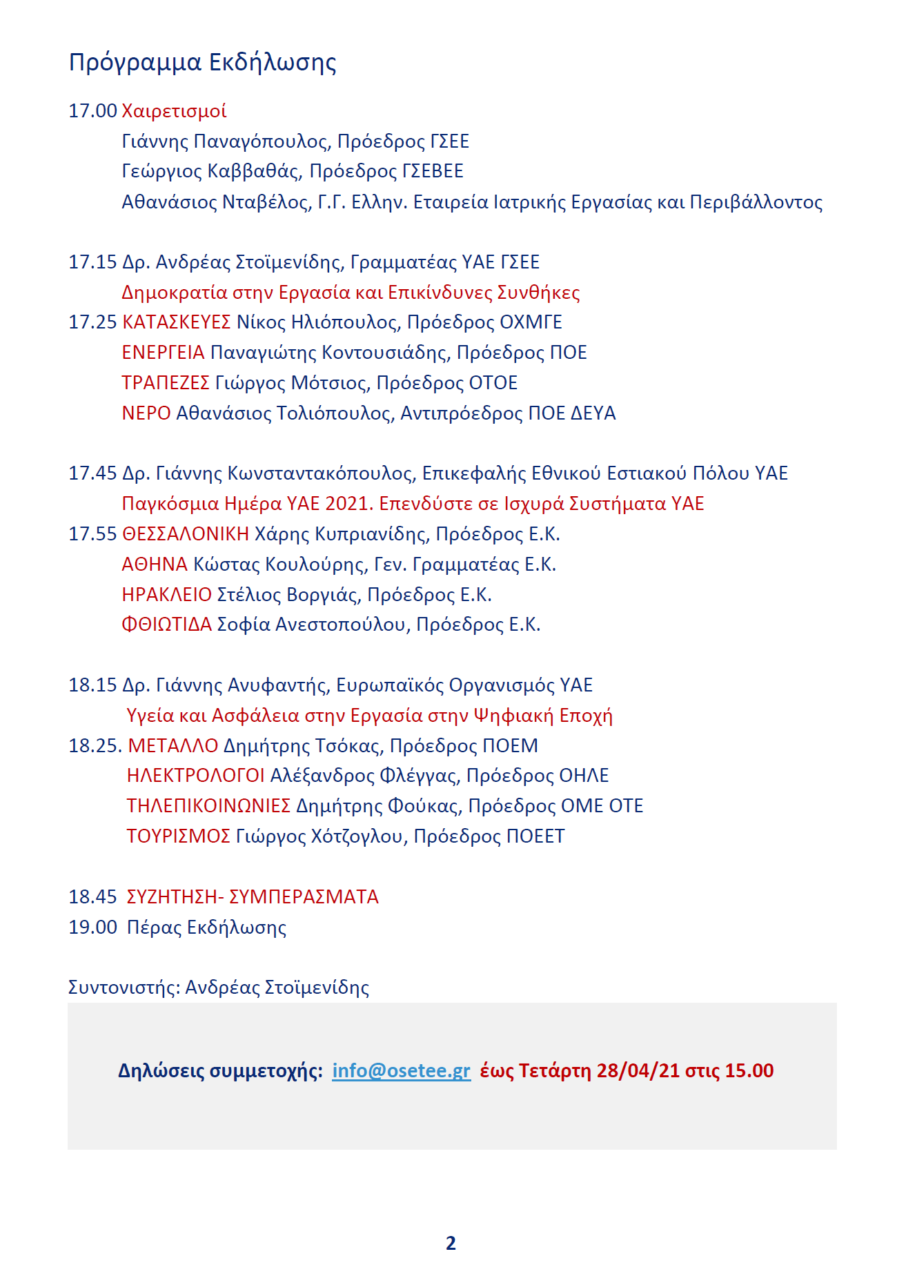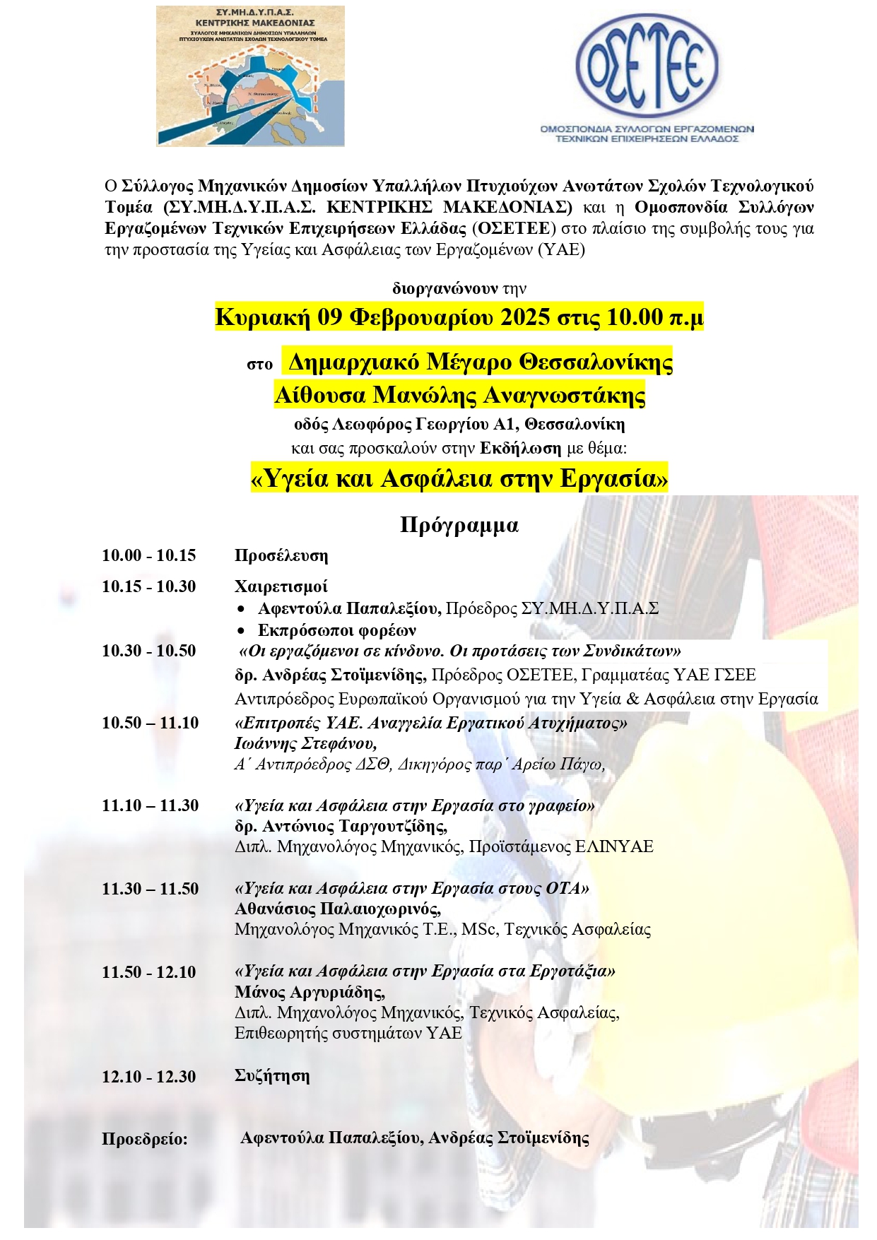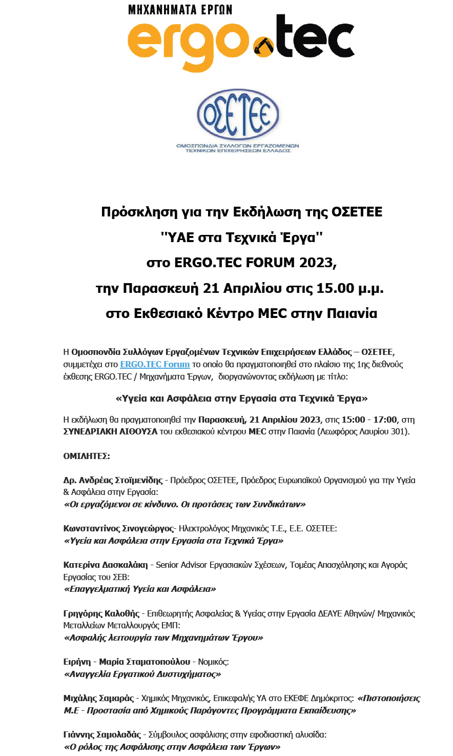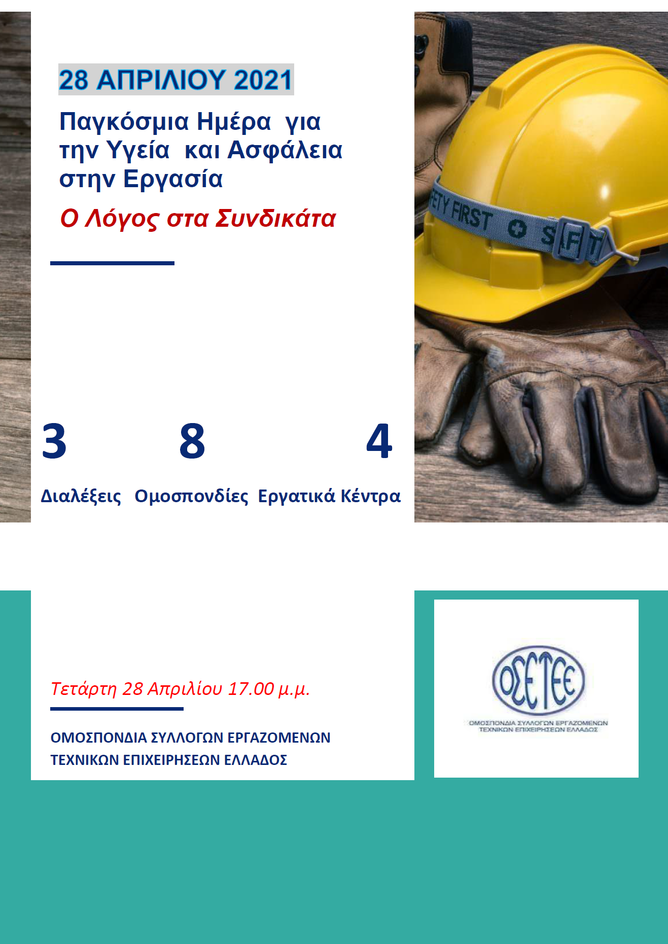 Η ΟΣΕΤΕΕ θα συνεχίσει τις πρωτοβουλίες της σε διεθνές και εθνικό επίπεδο και ιδιαίτερα με την συμμετοχή των εργαζομένων του κλάδου, αλλά και με τη συνεργασία όλων των Ομοσπονδιών και των Εργατικών Κέντρων για την ανάδειξη και αντιμετώπιση των ζητημάτων Υγείας και Ασφάλειας στην Εργασία.