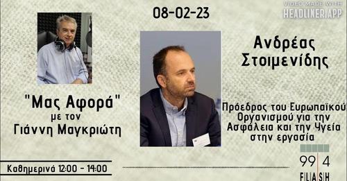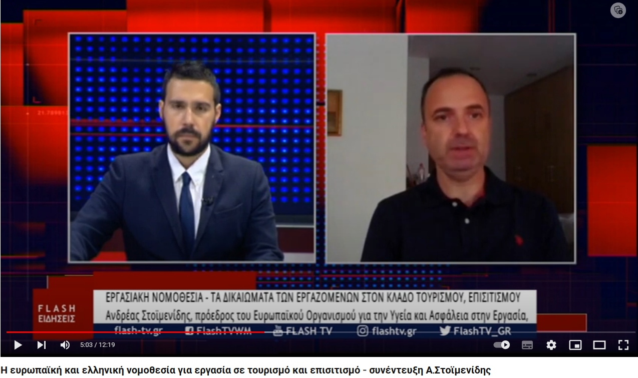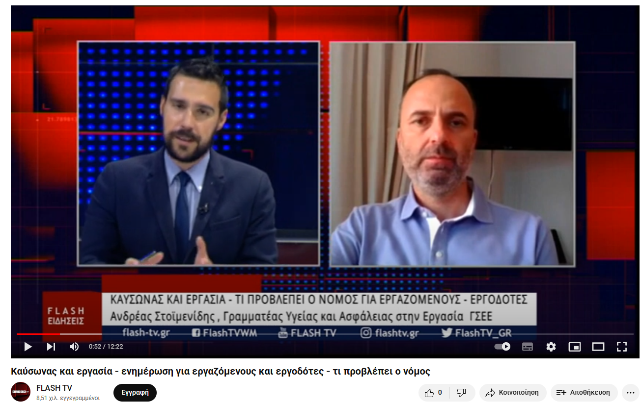 Ραδιοφωνική συνέντευξη του Προέδρου της ΟΣΕΤΕΕ στον δημοσιογράφο Γιάννη Μαγκριώτη στον Flash 99,4 fm με θέμα τα εργατικά δυστυχήματα.
