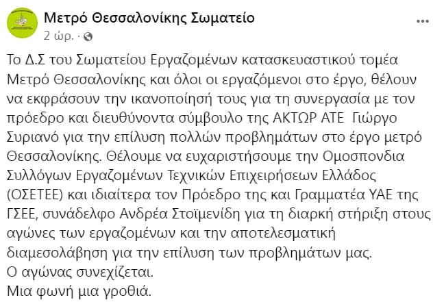 Όπως πάντα με αίσθημα υψηλής ευθύνης θα καταβάλουμε κάθε δυνατή προσπάθεια να πετύχουμε την καλύτερη λύση για τους συναδέλφους μας.