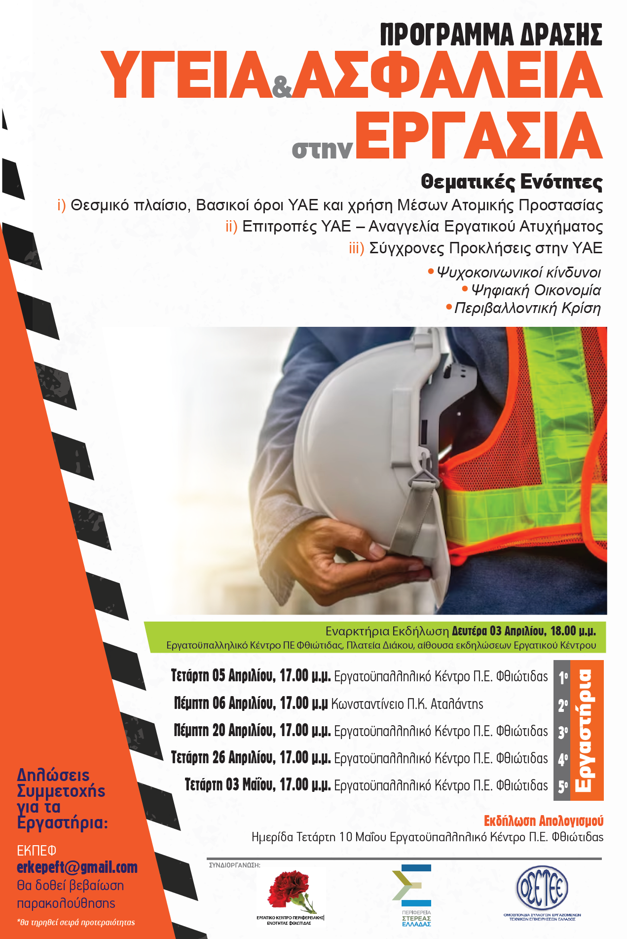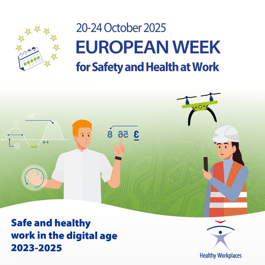 ''Υπό την αιγίδα του Ευρωπαϊκού Οργανισμού για την Υγεία και Ασφάλεια στην Εργασία και των Εστιακών Πόλων, γιορτάζεται σε όλη την Ευρώπη η Ευρωπαϊκή Εβδομάδα για την Υγεία και Ασφάλεια στην Εργασία εστιασμένη στην Ψηφιακή Εποχή.
