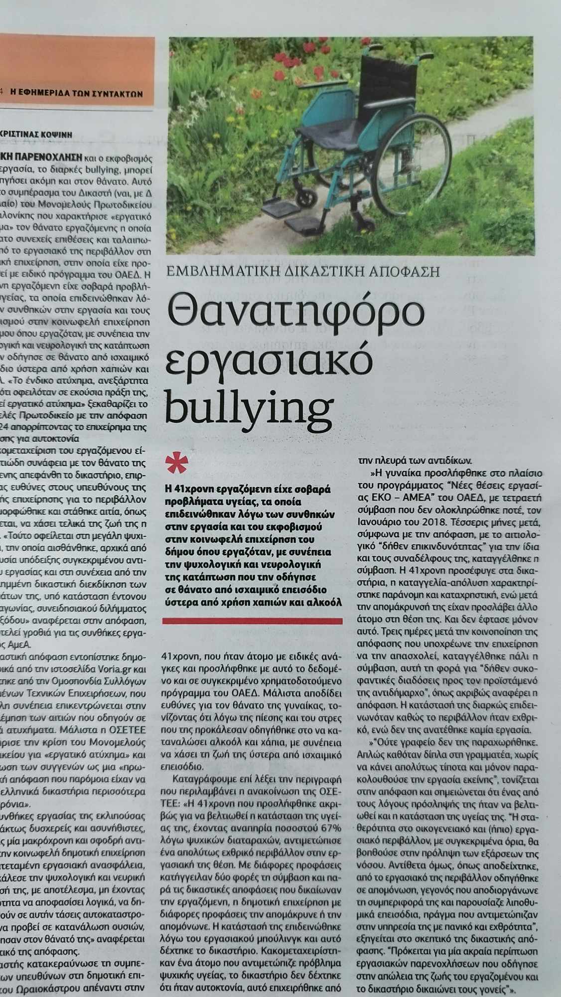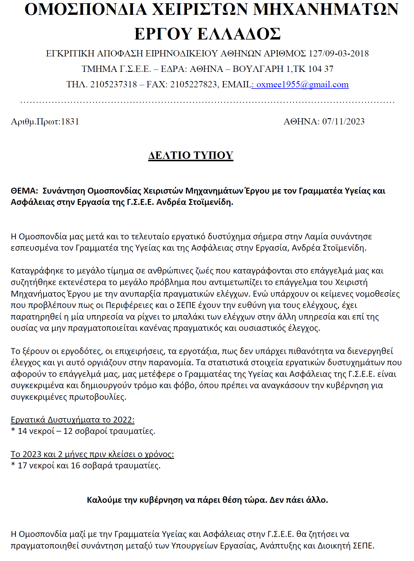 Ρεπορτάζ της δημοσιογράφου Αλεξίας Καλαϊτζή για το εργατικό δυστύχημα στη ΣΤΑΣΥ με δηλώσεις του Προέδρου της ΟΣΕΤΕΕ στον ιστότοπο της Kathimerini.gr, με θέμα: