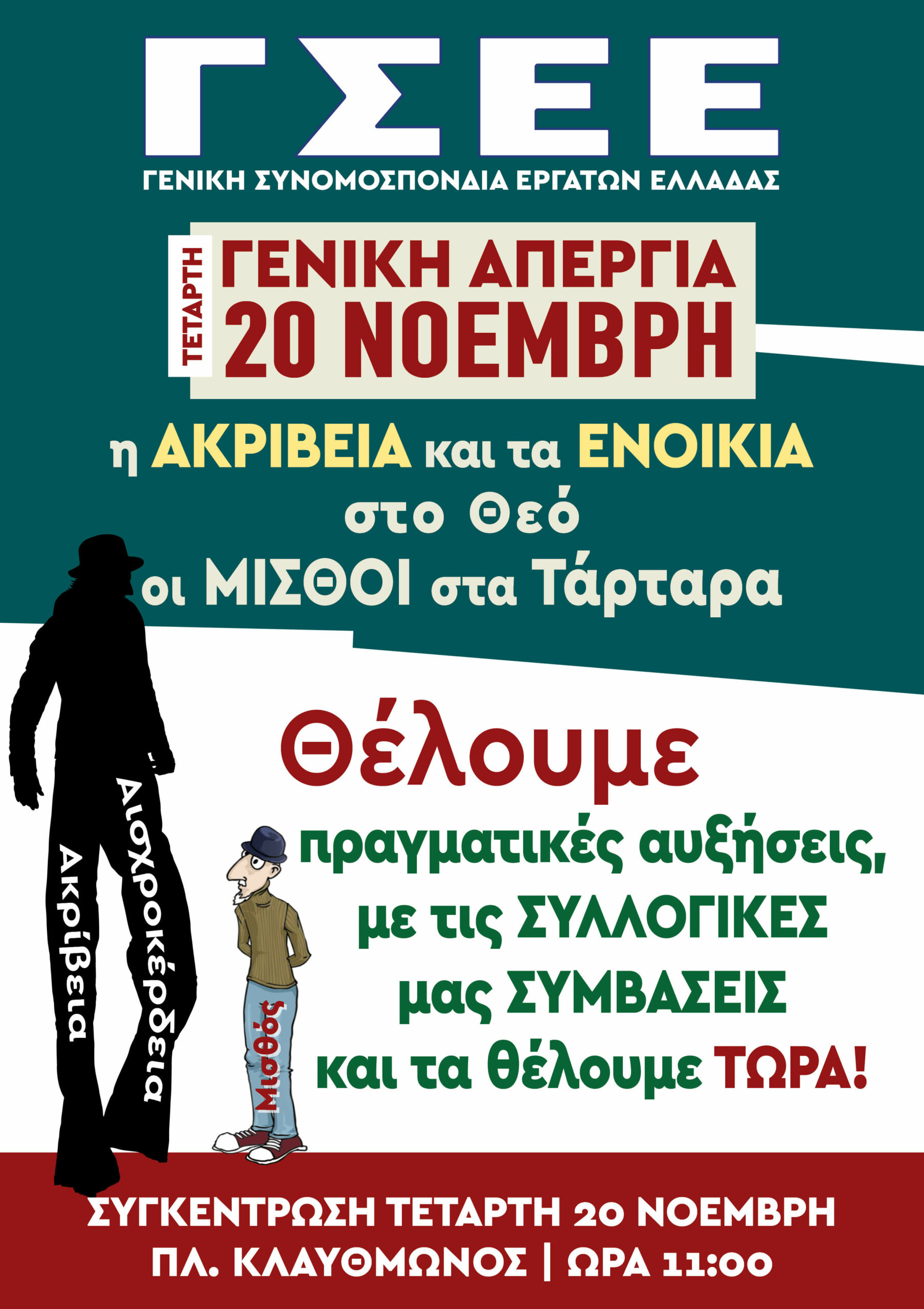 Καλούμε κάθε εργαζόμενη και εργαζόμενο να λάβει μέρος στην 24ωρη απεργιακή κινητοποίηση του Εργατικού Κέντρου Αθήνας την Τρίτη, 14/10 και στο συλλαλητήριο που αυτό οργανώνει στο Σύνταγμα στις 11.00 π.μ. καθώς και στην απεργιακή κινητοποίηση του Εργατοϋπαλληλικού Κέντρου Θεσσαλονίκης και στο συλλαλητήριο που οργανώνεται την ίδια ημέρα στις 11.30 π.μ. το πρωί μπροστά από το Υπουργείο Μακεδονίας Θράκης και στα κατά τόπους συλλαλητήρια των Εργατικών Κέντρων σε όλη την Ελλάδα.