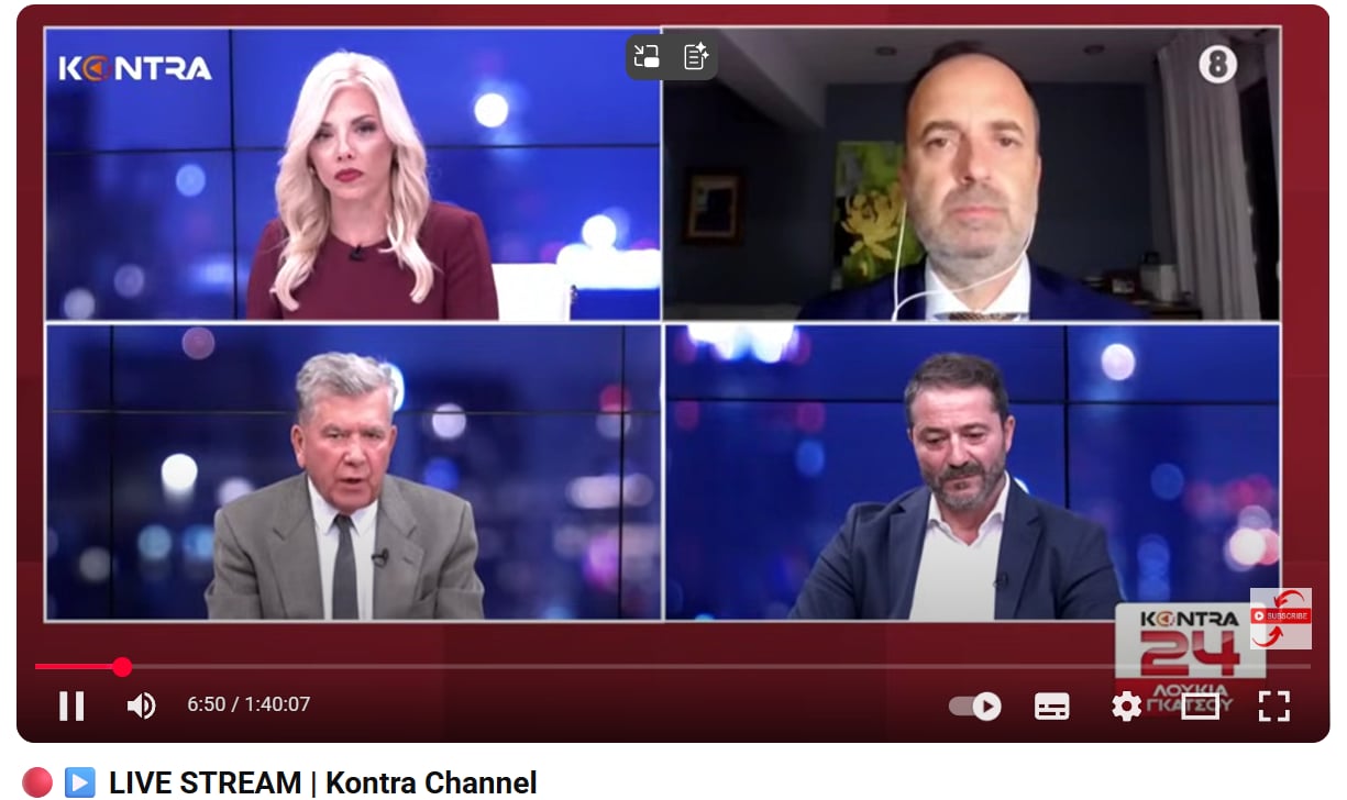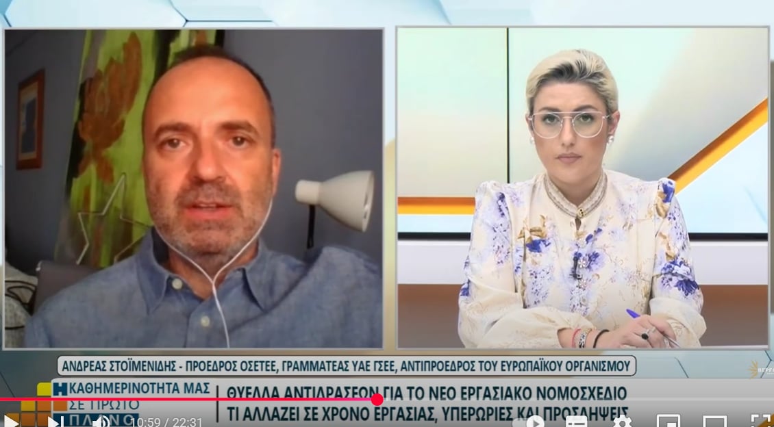 Συνέντευξη του Προέδρου της ΟΣΕΤΕΕ στη δημοσιογράφο Λουκία Γκάτσου στην εκπομπή Kontra 24 στο Kontra Channel με θέμα το εργασιακό νομοσχέδιο.