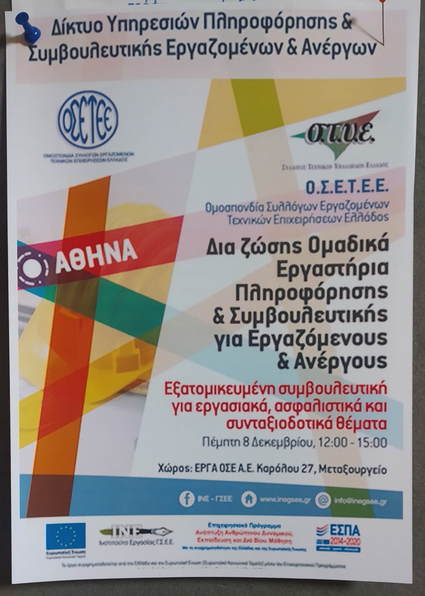 Προθεσμία Υποβολής Αιτήσεωνμέχρι και την Κυριακή 06/01/2019 και ώρα 23:59 στην διεύθυνση: ΟΣΕΤΕΕ, Χρήστου Λαδά 5-7, 10561 Αθήνα, 5ος όροφος .
