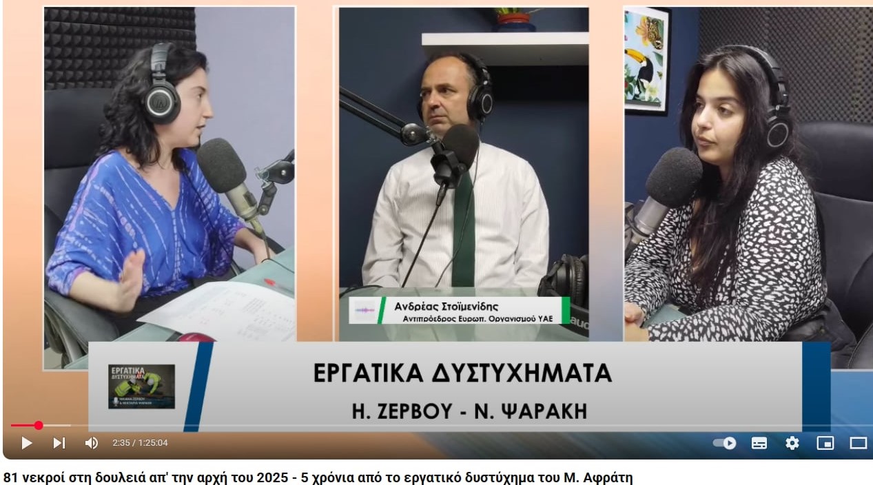 Παρουσίαση της Έρευνας για τα Εργατικά Δυστυχήματα στην Ελλάδα από τον Ανδρέα Στοϊμενίδη