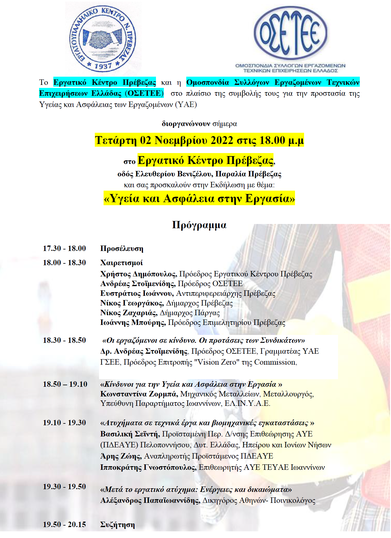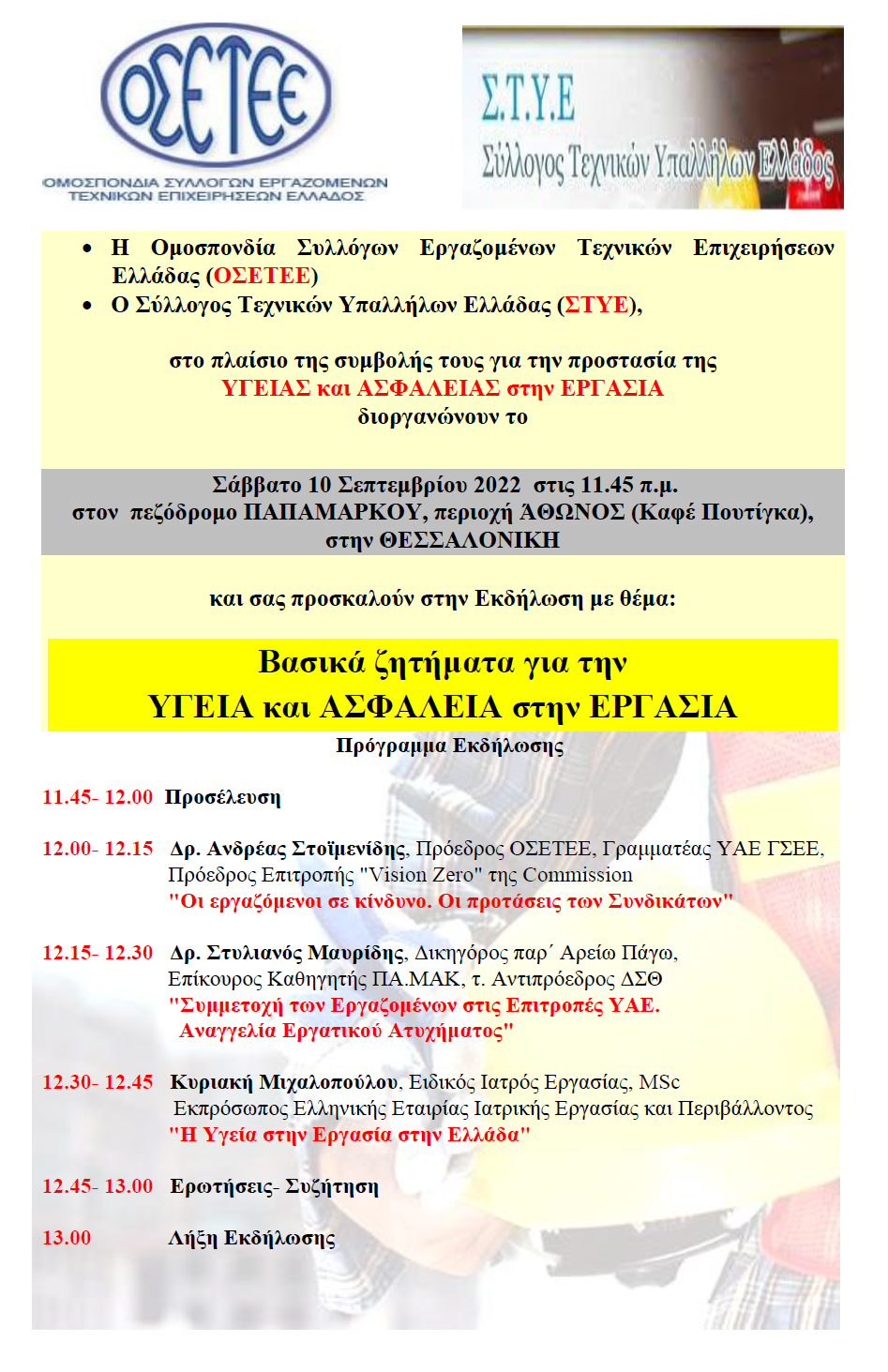 Η ΟΣΕΤΕΕ θα συνεχίσει τις πρωτοβουλίες της σε διεθνές και εθνικό επίπεδο και ιδιαίτερα με την συμμετοχή των εργαζομένων του κλάδου, αλλά και με τη συνεργασία όλων των Ομοσπονδιών και των Εργατικών Κέντρων για την ανάδειξη και αντιμετώπιση των ζητημάτων Υγείας και Ασφάλειας στην Εργασία.