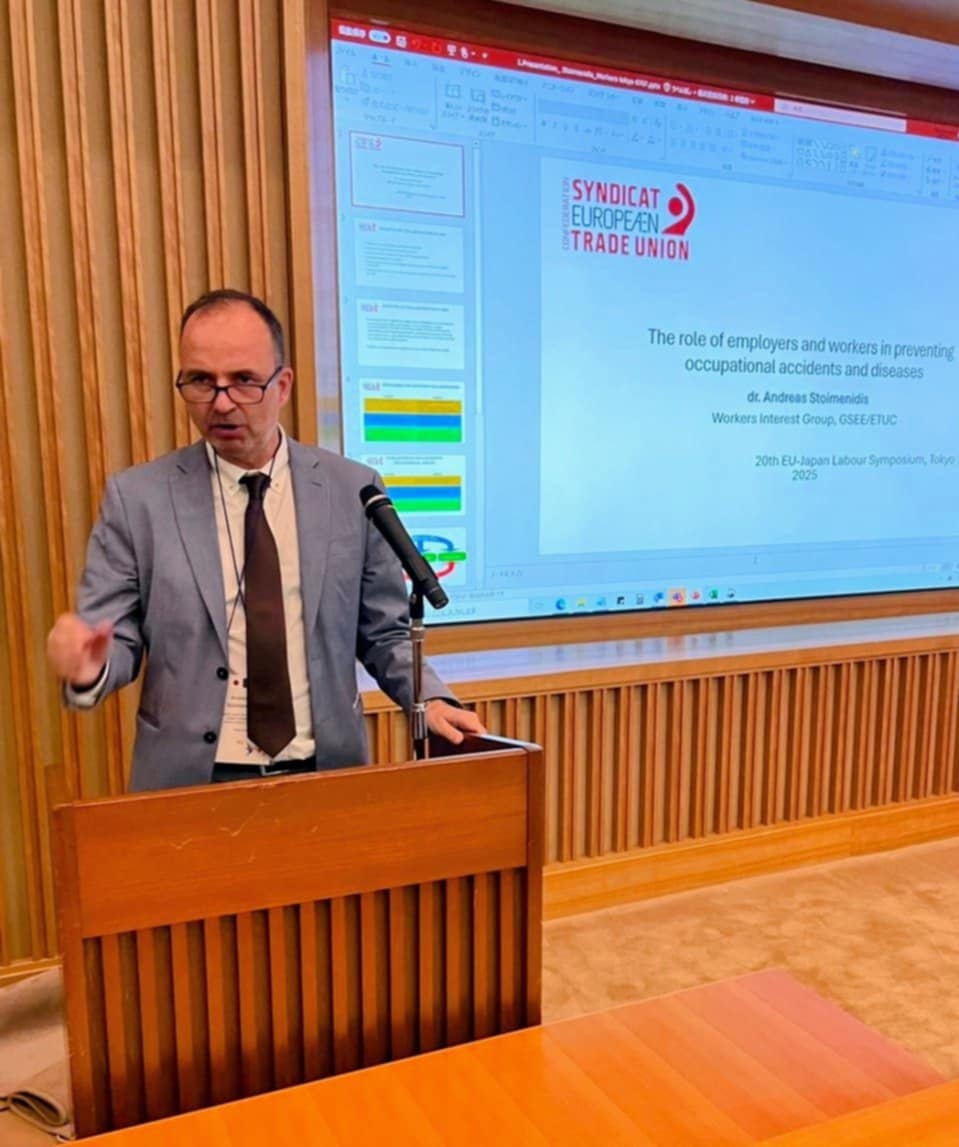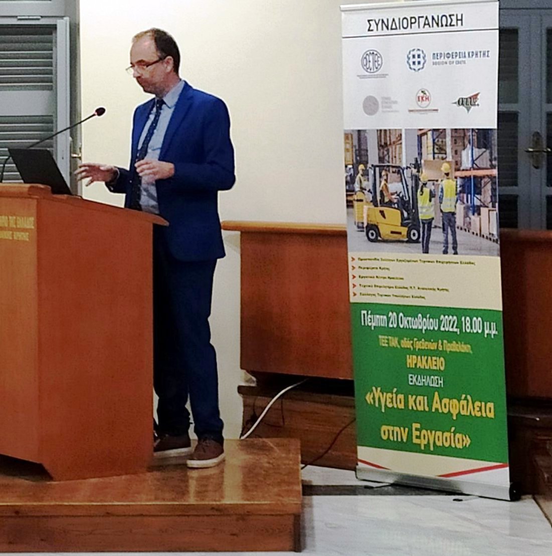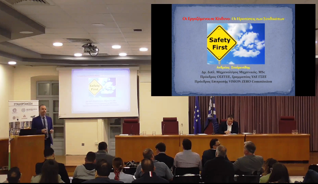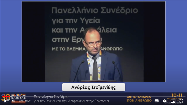 Στην ομιλία του ο Ανδρέας Στοϊμενίδης τόνισε ότι σε αντίθεση με την υπόλοιπη Ευρώπη η κατάσταση στα θέματα Υγείας και Ασφάλειας στην Εργασία (ΥΑΕ) στην Ελλάδα, επιδεινώνεται.