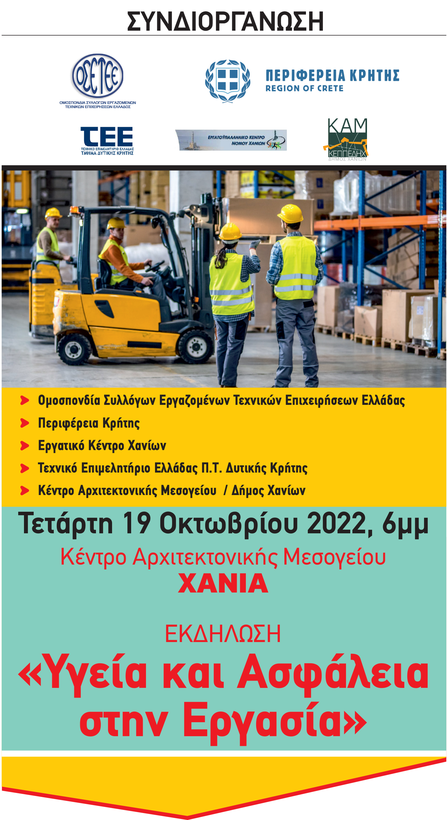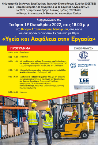 ''Υπό την αιγίδα του Ευρωπαϊκού Οργανισμού για την Υγεία και Ασφάλεια στην Εργασία και των Εστιακών Πόλων, γιορτάζεται σε όλη την Ευρώπη η Ευρωπαϊκή Εβδομάδα για την Υγεία και Ασφάλεια στην Εργασία εστιασμένη στην Ψηφιακή Εποχή.