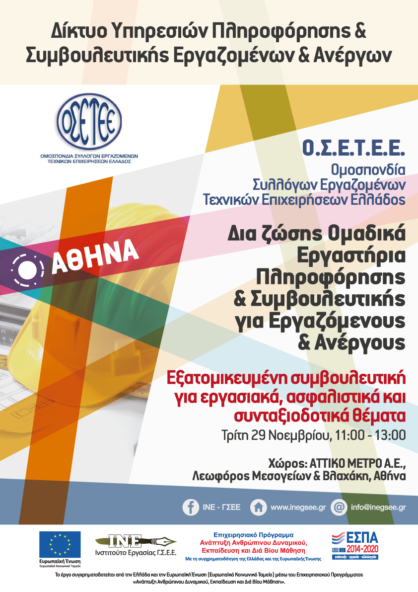 Προθεσμία Υποβολής Αιτήσεωνμέχρι και την Κυριακή 06/01/2019 και ώρα 23:59 στην διεύθυνση: ΟΣΕΤΕΕ, Χρήστου Λαδά 5-7, 10561 Αθήνα, 5ος όροφος .