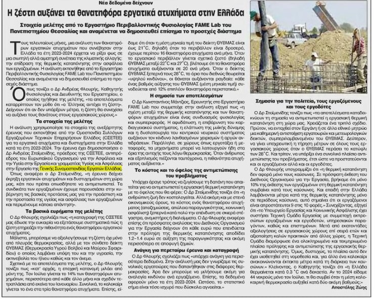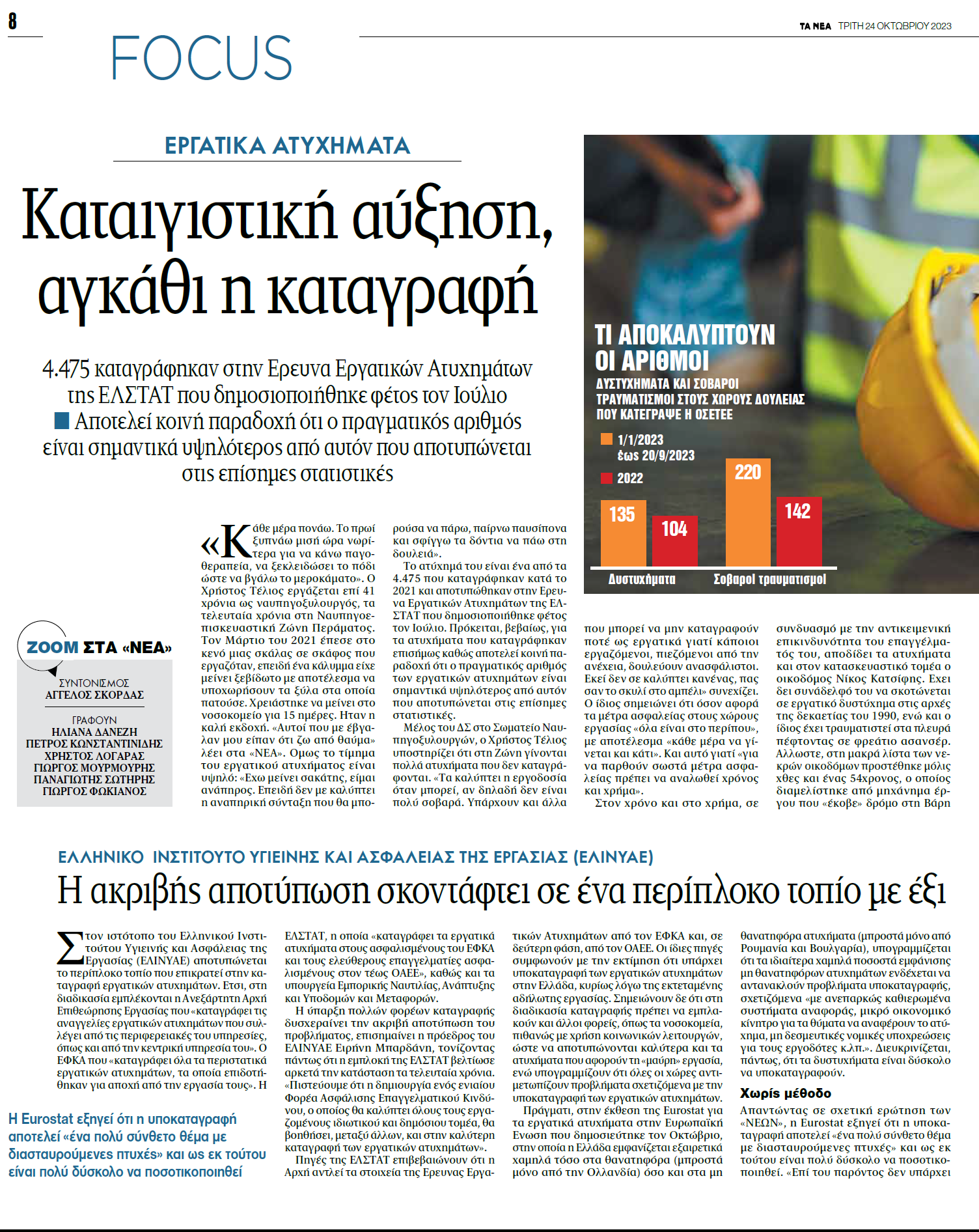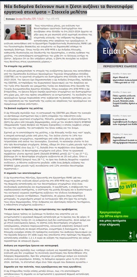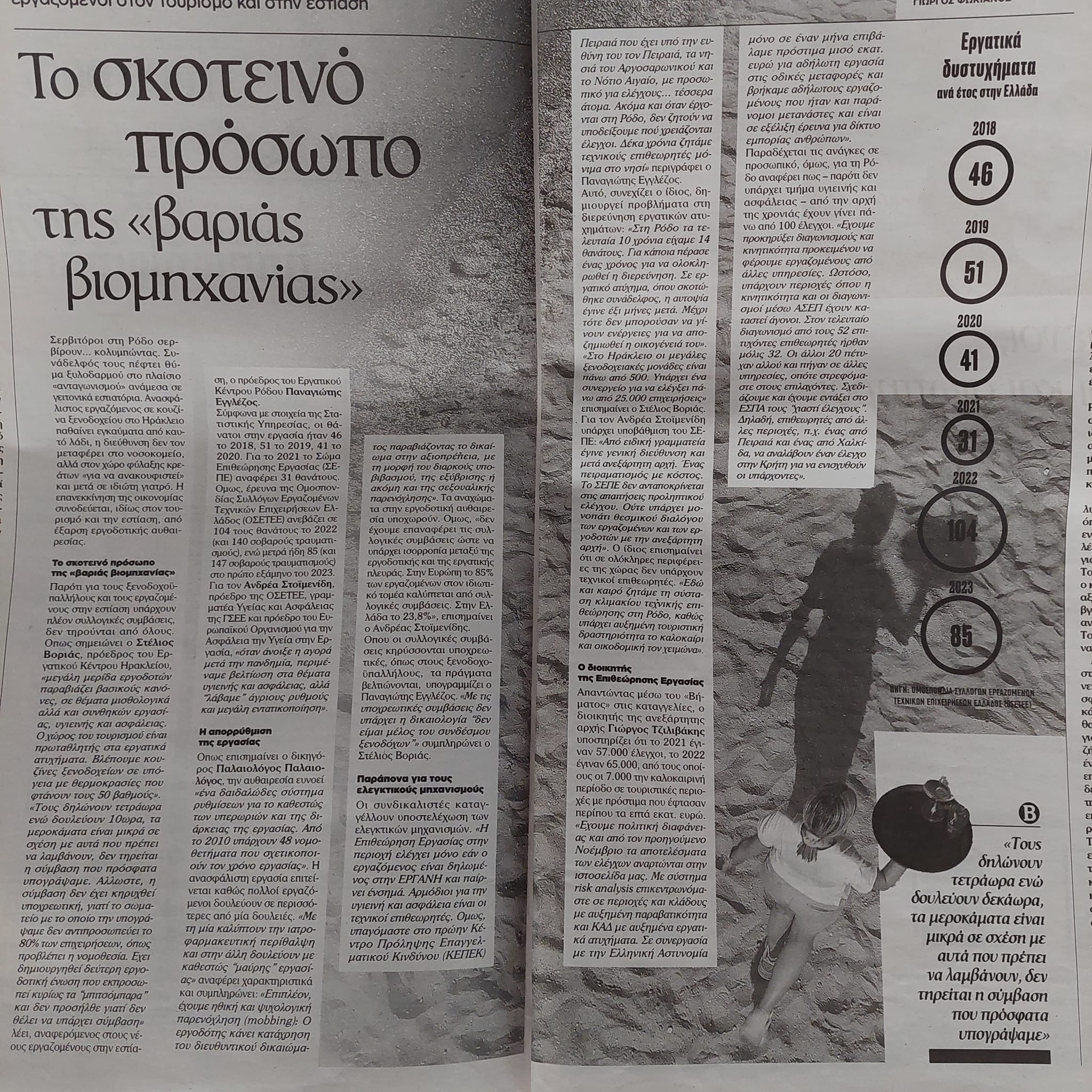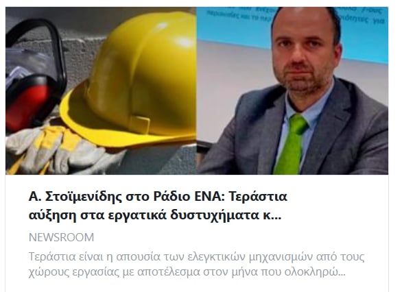 Ρεπορτάζ του Δημοσιογράφου Βαγγέλη Βαλαβάνη στον ιστότοπο Documento.gr με θέμα: Εργατικά δυστυχήματα: Σοκ με 190 νεκρούς για το 2025 –
