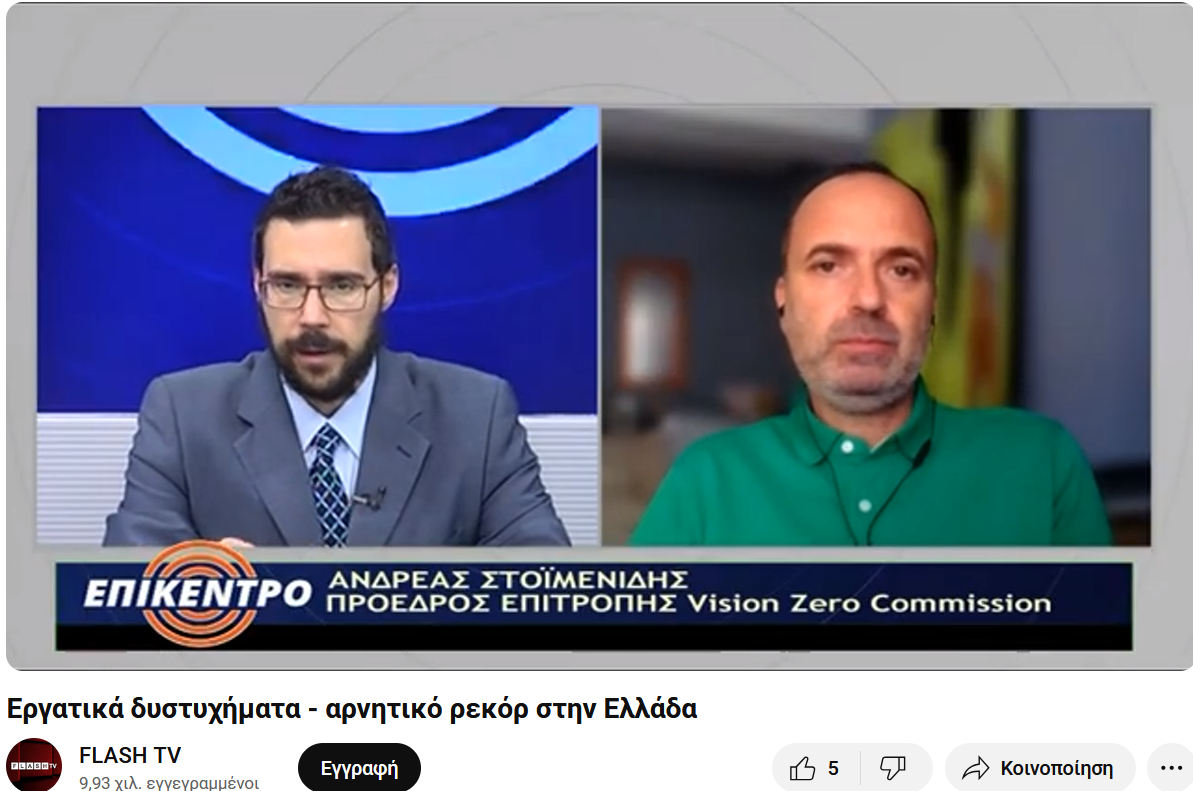 Ραδιοφωνική συνέντευξη του Προέδρου της ΟΣΕΤΕΕ στον δημοσιογράφο Γιάννη Μαγκριώτη στον Flash 99,4 fm με θέμα τα εργατικά δυστυχήματα.