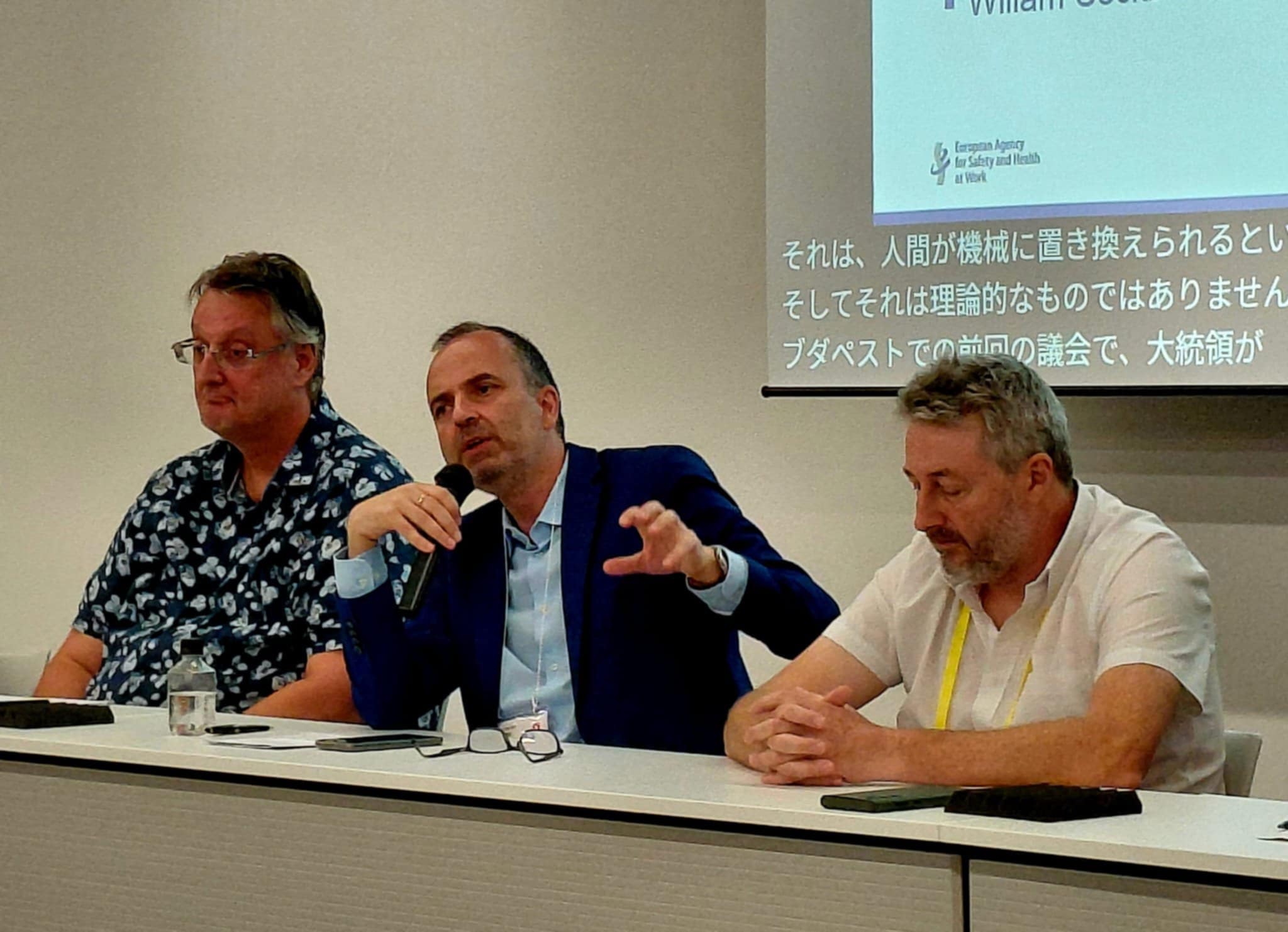 Ο Πρόεδρος της ΟΣΕΤΕΕ συν. Ανδρέας Στοϊμενίδης, ύστερα από πρόσκληση του Δ.Σ. του Ινστιτούτου και της Προέδρου κ. Ρένας Μπαρδάνη, και με την παράλληλη ιδιότητα του μέλους του Εκτελεστικού Συμβουλίου του Ευρωπαϊκού Οργανισμού για την Υγεία και Ασφάλεια στην Εργασία (EU-OSHA) εκπροσώπησε στην έναρξη του Συνεδρίου, με κεντρική ομιλία, τους Έλληνες και Ευρωπαίους Εργαζόμενους.