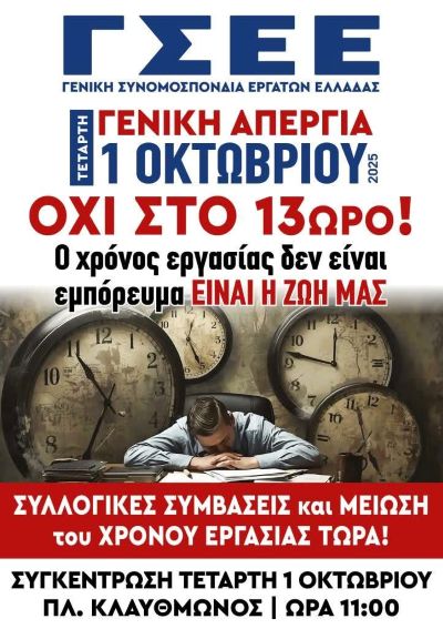 - Ενάντια στο 13ωρο και στην περαιτέρω ελαστικοποίηση των όρων εργασίας μας