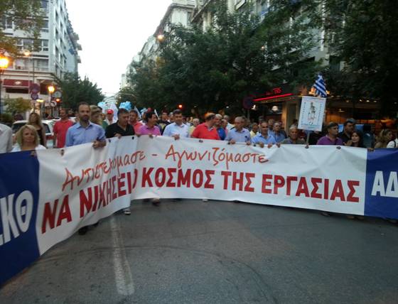 Με κεντρικό σύνθημα «Να νικήσει ο κόσμος της μισθωτής εργασίας» εργαζόμενοι, συνταξιούχοι, άνεργοι διαδήλωσαν κατά της ασκούμενης κυβερνητικής πολιτικής, της λιτότητας και των μνημονίων και απαίτησαν να μπει οριστικό τέλος στα μέτρα που εξαθλιώνουν την κοινωνία και συντηρούν τη φτώχεια και την εξαθλίωση.