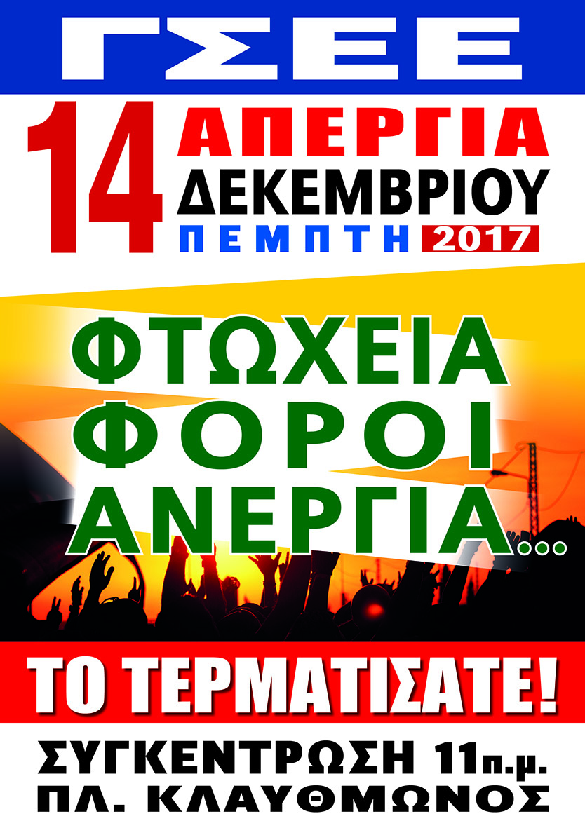 ΔΕΛΤΙΟ ΤΥΠΟΥ ΓΣΕΕ ΓΙΑ ΑΠΕΡΓΙΑ 14 ΔΕΚΕΜΒΡΙΟΥ 2017