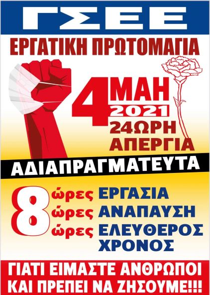 Αφίσα για την απεργία της εργατικής Πρωτομαγιάς την Τρίτη 4 Μαΐου